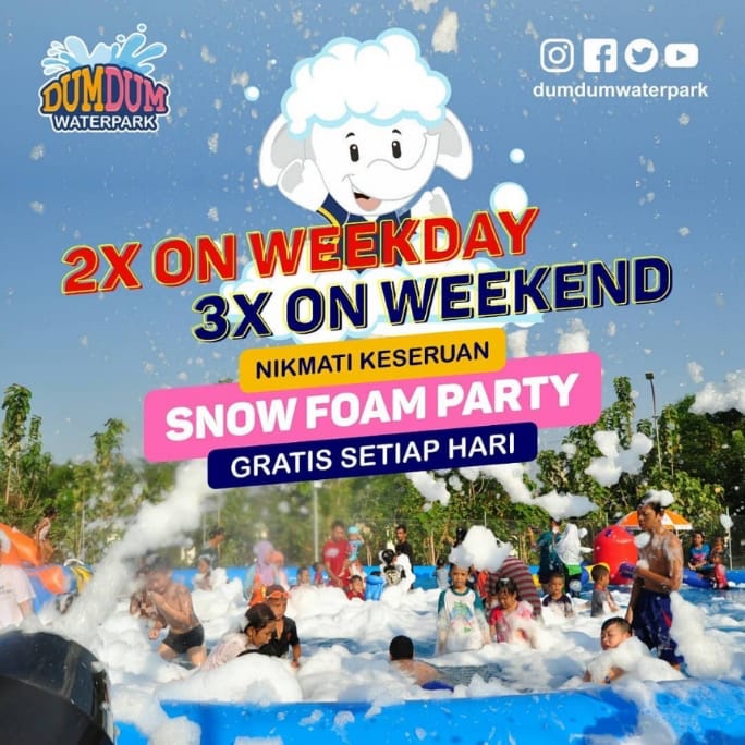 Karena antusiasme pengunjung, Dum Dum Waterpark akan memperpanjang jam operasional. Dari yang sebelumnya beroperasi mulai pukul 8.00 WIB – 18.00 WIB, menjadi pukul 11.00 WIB – 21.00 WIB malam saat weekday atau hari kerja. Weekend dari Pukul 8.00 WIB – 21.00 WIB. Harga tiket masuk tetap, weekday Rp25.000 dan weekend Rp35.000 dan semuanya sudah gratis. Wahana permainan air semua gratis dan mandi busa juga gratis.